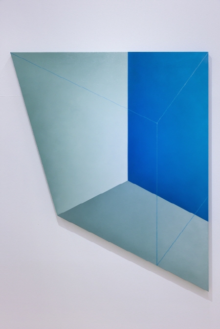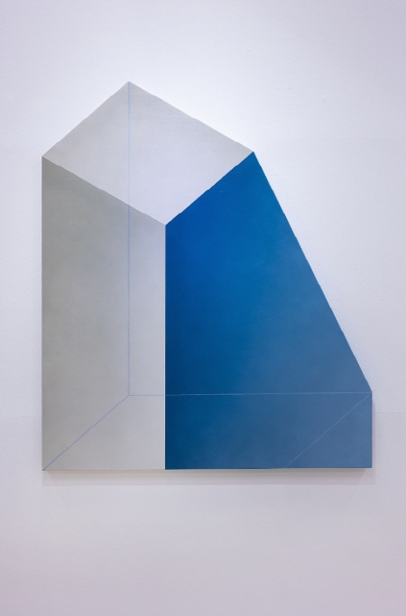 이번 전시는 육면체를 모티브로 한 3 점의 대형 캔버스 작품 <불확정성 유기적 공간> 시리즈와 <유연한 공간> 시리즈의 캔버스 작품 3 점 그리고 드로잉 작품 3 점을 함께 선보입니다. 드로잉으로 만든 여러 구조적 조합을 정교하게 건축도면으로 발전시키고 이를 적용하여 비정형의 쉐이프트 캔버스(Shaped Canvas)를 만들었던 기존의 방식과 달리, 이번 전시작들은 대형 캔버스 작업들을 먼저 완성한 후 여기에서 추출한 건축적 구조들을 실험하는 드로잉 개념의 유연한 공간 연작으로 발전되었습니다.