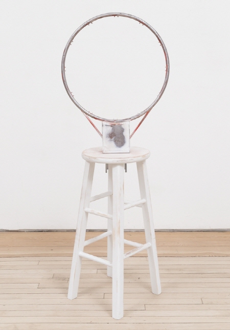 Trace Elements_Basketball rim and wooden stool_138.4x50.8x50.8cm_2022