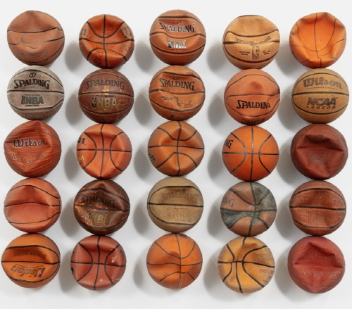 Build Me Up Buttercup_Used basketballs, liquid plastic, steel, epoxy_111.8x137.2x22.9cm_2022