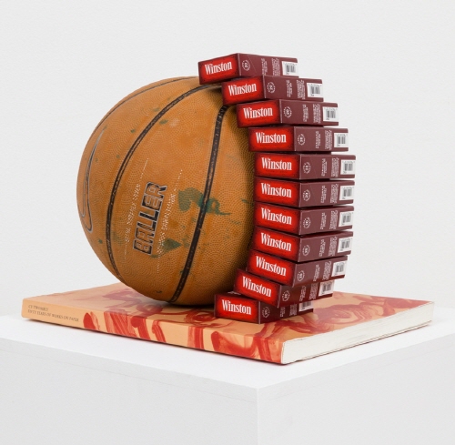 Those Are Some Big Holes in Your Underwear_ Used basketball, resin, silicone, cigarette packages, artist book_25.4x34.3x24.8cm_2022