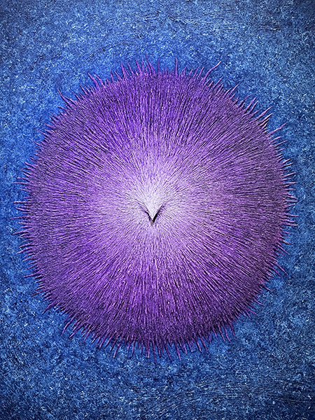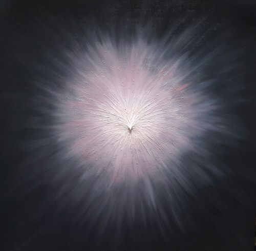 이 작품은 빛을 그려내는 작가, 권세의 작품입니다. 그는 인간 내면에 존재하는 근원의 빛을 탐구하며 이를 화폭에 옮겨내는 작업을 진행합니다. 현실을 살아가는 인간 내면에 근원의 빛이 존재한다고 바라보는 작가의 시선은 요가와 명상 수련에서 말하는 차크라의 개념과도 비슷합니다.