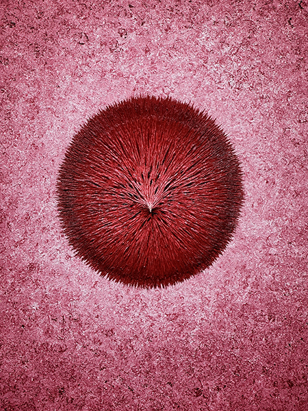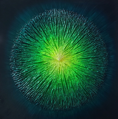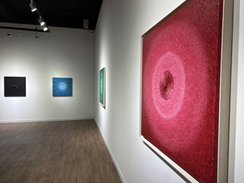 이를 화폭에 옮기는 방식은 불교의 만다라와도 유사한 듯 보입니다. 하지만 그는 단순히 기존에 존재하는 개념으로 빛을 표현하기 보다는, 자신만의 방식으로 빛을 표현하고자 합니다. 기존에는 빛이 현실과 동떨어진 성스러운 것으로 묘사되었습니다. 그러나 그는 ‘내면에 존재하는 빛’으로서 현실을 살아가는 존재로서의 인간이라는 점을 작품에 담고 있습니다.