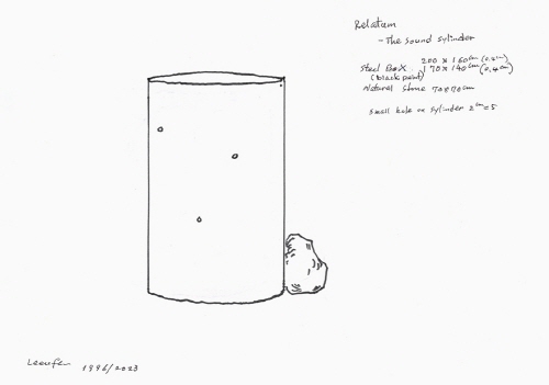 Drawing for 〈Relatum - The Sound Cylinder〉 1996/2023_Steel box, natural stone,