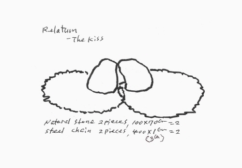 Drawing for 〈Relatum - The Kiss〉 2023_Natural stone and steel chain Natural stone_100x70cm (2 pieces)