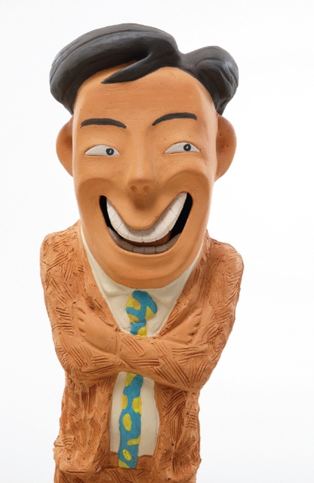 김주호의 작업의 모토는 사람이다. 그의 작업은 사람의 얼굴과 몸동작을 각양각색의 변형된 형태로 표현하는데 있다. 가장 사실적이고 직설적 화법으로 인간의 다양한 내적감 성을 해학적으로 표현하고 있는 작가의 작업에는 인위적이거나 가식이 없다. 그저 인간의 삶을 솔직하고 재미있게 또 꾸밈이 없는 순박한 표정으로 담아내고 있다. 삶의 긍정적 요소만을 강조하는 듯 그가 빚어낸 얼굴은 고뇌와 번민의 얼굴이 아니라 기쁨과 웃음, 재치와 위트의 미학만을 강조하는 듯하다. 한국전통미술에 숨어있는 선조예술가들의 해학적 표현은 그의 작업에 고스란히 이어져 있으며 그의 얼굴 속에는 번뇌를 이겨낸 인간의 소박한 미소를 담고 있다. 예술은 우리 시대의 아들이고 우리 사고의 어머니라고 한 칸딘스키의 말처럼 작업에 등장하는 김주호의 시대는 혼란과 고뇌의 삶을 살아가는 시대의 아픔 보다는 인간의 긍정성을 얼굴이라는 보편적 아이덴티티에 담아 해학적으로 분출하는 방식이다.