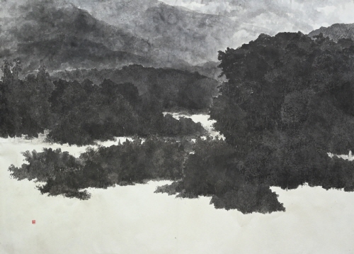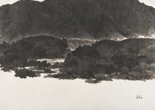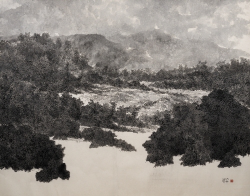 그의 화면은 대체로 검고 어둡다. 수묵화의 특징이다. 그러나 그의 수묵은 맑고 두터우며 깊이 있다. 반복적인 선염과 적묵을 통해 이루어지는 수묵의 두터움은 탁함을 기본으로 한다. 그럼에도 불구하고 그의 수묵이 맑게 느껴지는 것은 바로 물에 대한 그의 장악력과 이해가 반영된 결과일 것이다. 그는 탁함을 통해 맑음을 드러내고, 어두움을 통해 밝음을 표현하는 모순되고 상충되는 가치를 수묵을 통해 표출해 내고 있는 것이다. (중략)