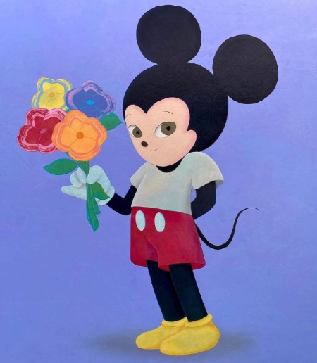 김바르 作_Mickey in Peace Flower, 2023_Acrylic on canvas_90x90cm
