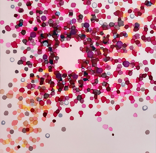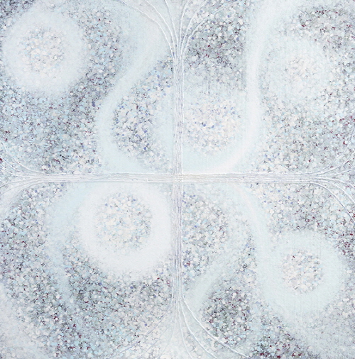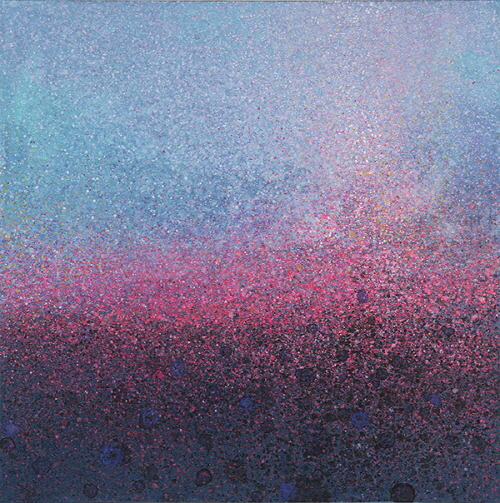 이선희의 작업은 캔버스를 꼼꼼히 메운 거대한 색면으로부터 시작된다. 색면을 완성하기 위해 작가는 오래도록 공을 들여 얇게 물감을 쌓는다. 깊은 밤하늘의 파랑, 자유로운 노랑, 그리고 봄처럼 싱그러운 색들을 좇아, 그는 마음에 드는 색이 나올 때까지 명상하듯 작업을 계속한다. 색면이 완성되면 그 위로 짧은 선을 반복해서 그어나가거나, 농도가 다른 물감을 떨어트려 작가의 삶 속에서 유래한 소박한 기쁨들을 새겨 넣는다. 섬유질처럼 엉켜진 수만 번의 붓 터치는 색면 위에 소복이 쌓여 보는 이를 압도하는 신비로운 힘을 뿜는다. 「조우」에서 우리는 한 여름, 작가의 심장을 두근거리게 만들었던 풀의 군무를 본다. 그곳에는 한 송이의 꽃을 묘사할 때는 결코 표현할 수 없는 에너지로 가득하다. 나무와 수많은 잎과 무리를 이루어 핀 작은 보라색 꽃이 뿜어내는 소란스러운 생명력이 보는 이를 찬란한 여름의 한 때로 초대한다. 사람들은 그의 작품을 보고 생동감, 아름다움, 환희에 대해 이야기한다. 이는 비참한 세상조차 너그럽게 감싸 안는 그의 본성에서 비롯되었을지 모른다. 「머무르지 않는 것」에서는 곱게 깔린 색면의 바다 위로, 튀어 오르는 점들이 부유한다. 점은 옹기종기 모여 울렁이며 진한 색의 파도를 형성하거나 서로 겹겹이 쌓여 빛이 투과되는 것 같은 투명함을 만들어낸다. 작가는 그림을 설명하며 자유, 봄, 사랑과 같은 단어를 사용했다. 무엇보다 정성껏 표현하고 싶었던 것은 맑게 겐 물감을 캔버스 위로 드리핑 해 만들어낸 투명한 느낌의 점이었다. 이 형상들은 고정된 캔버스 안에서 아른거리며 움직이는 듯 한 인상을 준다. 안은 텅 비어있고 뚜렷한 실체가 없다는 점에서 그것은 그 자체로 흔적과 같다. ‘머무르지 않는’의 다음에 올 명사를 굳이 지목하지 않은 것은 결국 ‘모든 것’이 우리 곁에 남지 않을 것이라고 말하고 싶은 것은 아니었을까. 그러나 머무르지 않을지라도 흔적은 결코 지워지거나 사라지지 않는다. 흔적은 머무르지 않는 것의 자취다. 그의 캔버스는 덧칠하고 겹치며 피어나는 맑은 흔적들로 가득하다. 머무르지 않는 것들을 추억하며, 작가는 그 흔적만이라도 맑게 남기를 기도한다. 결국 홀로 남더라도 흔적만은 맑게 되기를.