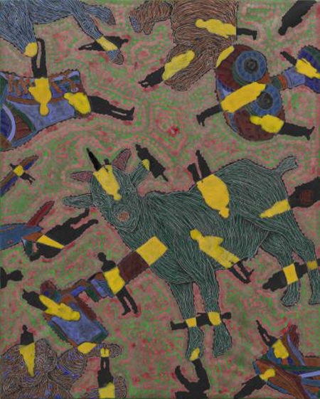 유목동물+인간-문명2022-10_162×130cm_한지에 수묵채색 및 아크릴_2022