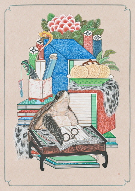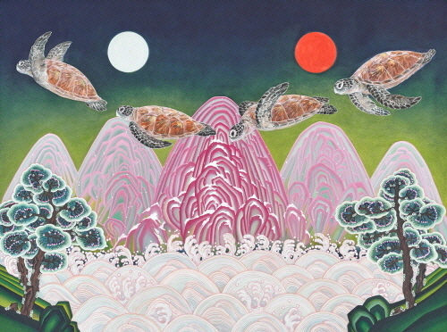 광동제약의 상징인 거북이는 옛 그림속에서 장수와 재물을 상징해 왔다. 생명력이 매우 강하여 신령스러운 동물로써 ‘사신(四神)’과 사령(四靈)’으로 표현되기도 했고, 미래를 내다보는 예지력을 지닌 신령스러운 존재로써의 거북 형상은 도교적 · 유교적의 상징으로 표현되기도 했다. 작가는 인간의 삶 속에서 오랜 시간 생명의 상징으로 표현되어온 거북이를 통해 가산의 과거를 살피고 광동을 새로운 미래로 안내한다.