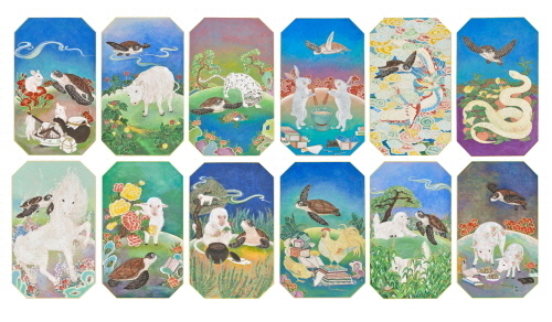 十二神(십이지신)_78x47.5cm_장지에 채색_2023