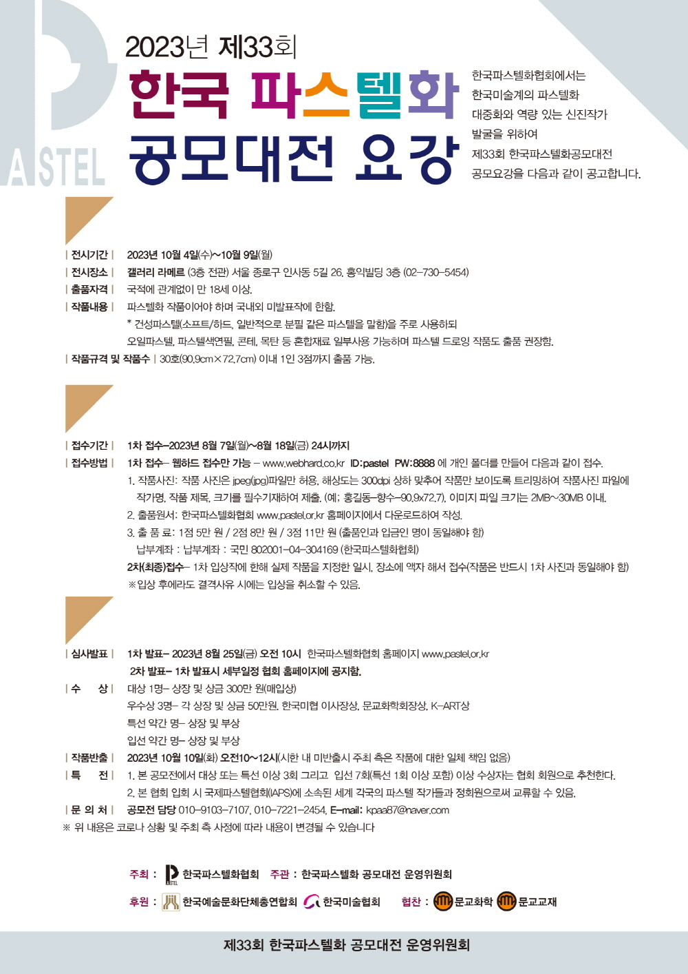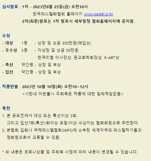2023년 제33회 한국파스텔화 공모대전 요강