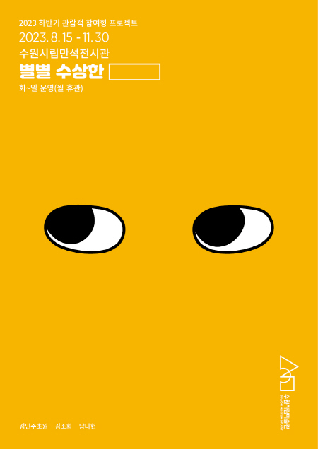 경기도 수원시립미술관(관장 홍건표)은 창의적이며 실험적인 작가의 예술세계를 경험하는 관람객 참여형 프로젝트 《별별 수상한___》을 8월 15일(화)부터 11월 30일(목)까지 수원시립만석전시관 프로젝트스페이스와 교육실에서 개최한다. 《별별 수상한___》은 일상의 평범한 주제를 실험적으로 관찰하고, 친숙한 재료를 이용해 창의적으로 표현하는 현대미술작가 김민주초원, 김소희, 남다현의 작품을 선보이고 연계 교육을 운영하는 관람객 참여형 프로젝트로 총 세 개의 섹션으로 운영된다. 첫 번째 섹션 <별별 수상한 약국>에서는 작가 김민주초원이 약의 형태를 재해석하여 동화 같은 색감의 작품으로 재생산한 연작 < How Are You Today? >(2022) 중 비염을 주제로 한 <비염이 심했던 여름>(2022)과, < H의 디스크 >(2023) 등 신작 2점을 함께 선보인다. 두 번째 섹션은 <별별 수상한 잡화점>으로 세계 각국에서 수집한 물품과 이미지를 활용해 새로운 작품으로 표현하는 김소희 작가의 작품을 전시한다. 감자칩 이미지를 콜라주와 여러 물체를 한데 모아 미술 작품을 제작하는 기법인 아상블라주 방식으로 표현한 <감자칩 월드컵>(2021)과 국내 문구점에서 쉽게 구할 수 있는 재료들을 설치 작품 형태로 제작한 신작 <브라우니>, <트리 하우스>(2023) 등을 선보인다. 마지막 섹션 <별별 수상한 진짜...가짜?!>에서는 종이, 스티로폼 등 우리 주변에서 구하기 쉬운 재료를 이용해 일상의 모습을 그대로 복제하여 현대사회에 대해 고찰해보는 남다현 작가의 작품을 선보인다. 이번 프로젝트에서는 오토바이를 복제한 < #23-A >(2022)와 포켓몬스터 빵 제품 판매대를 그대로 구현한 설치 작품 < UAS-#2 >(2022) 등이 전시된다.