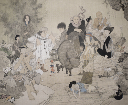 춘주팔괴_170x205cm_리넨에 먹과 채색_2018