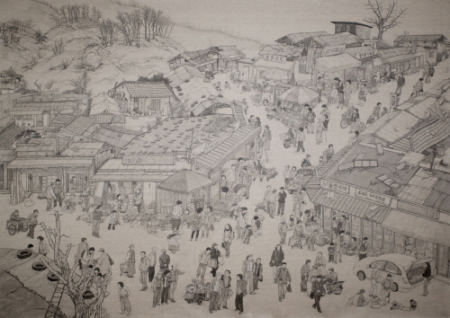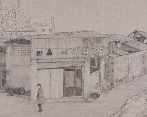 <열쇠가게>, <자전거포>, <찰리샵>, <춘천여고 언덕길>, <소양로> 등은 전신사조의 미학이 풍경으로 스며서 깊이를 이룬 작품들이다. 사람이 깃들어 사는 곳은 무엇 하나 신령하지 않은 곳이 없다. 깃들었으니, 그가 풍경에서 찾는 것은 풍경의 속살이다. 속살의 무늬다. 그는 그 무늬 하나하나를 그리며 겹겹에 갇힌 풍경의 역사를 길어 올린다. 그것은 그곳을 살았고, 또 살아가는 사람들의 무늬와 다르지 않을 것이다. 사람과 풍경이 한 가지로 똑 같은 무늬를 이룬 자리에 솟는 것이 ‘기억’이라는 돋을새김이다.