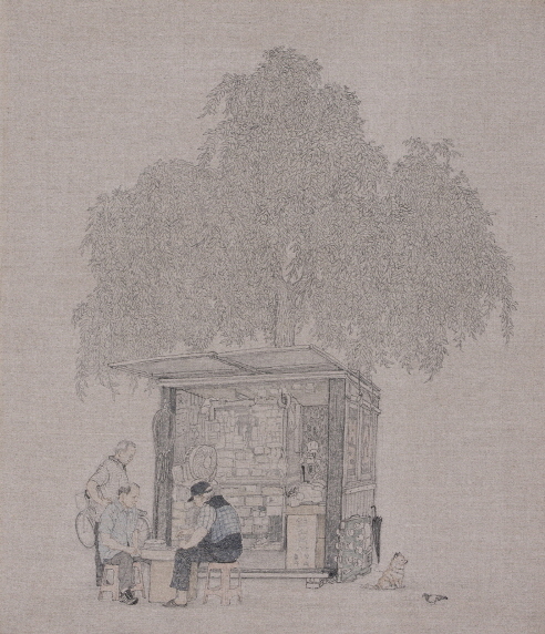 열쇠가게_53x45.5cm_리넨에 먹과 채색_2023