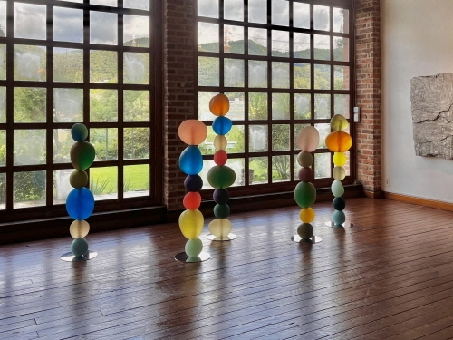 진귀원 作_gemstone tower_투명 레진, 염료, 스테인레스 스틸_50x50x220cm_2022