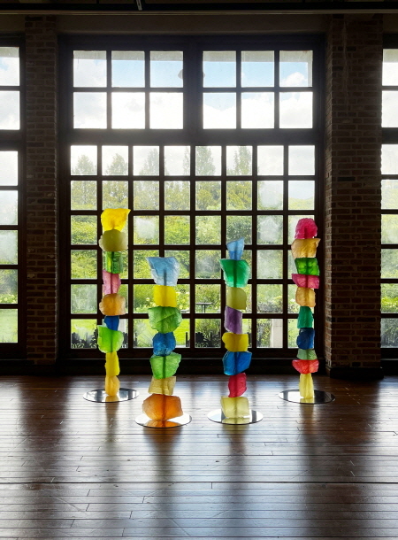 진귀원 作_gemstone tower_투명 레진, 염료, 스테인레스 스틸_50x50x190cm_2022
