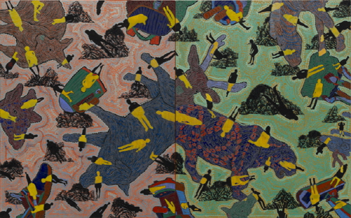 이종융합동물+유토피아2023-3_162×130cm×2개_한지에 수묵채색 및 아크릴_2023