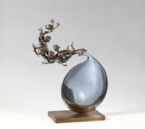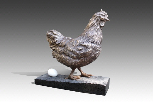 전덕제 作_닭과알 생명의 축제_브론즈,대리석_40x35x38cm_2017