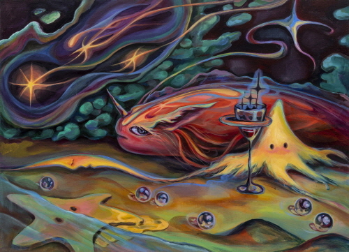 취운 (醉暈): 술에 취하여 눈앞이 아른거림을 이르는 말. 이 술에 취한 아른한 기운은 사실 흡수된 알코올이 우리가 감각을 수용하는 중추신경계를 억제함으로써 나타나는 현상이다. 현실과 자아의 벽, 우리는 이 중추신경계가 여과해낸 정보만을 현실로 정의한다. 그렇다면 현실은, 사실일까. 강세희 작가는 우리가 미처 보지 못하는, 아니면 보려고 충분히 관심을 기울이지 않는 시야를 그리며 이 주제를 탐구한다. 취함을 느끼며 우리는 작가의 생물들과 동질감을 느낀다. 몸에 힘을 빼고, 얼굴은 붉어지고, 무엇보다 세상은 조금 뭉뚱그려진다. 이번 전시에서의 취함은 속세로부터의 도피가 아닌, 세상에 대한 불확실함으로 해석된다. 우리가 바라보는 이 시선이 조금은 달라질때, 비로소 우린 관점을 갖는다.