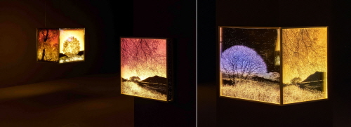 타자의 풍경 2307, 타자의 풍경 2305_60x60x60cm_Mixed Media behind Acryl Mirror in RGB LED Light Box_2023