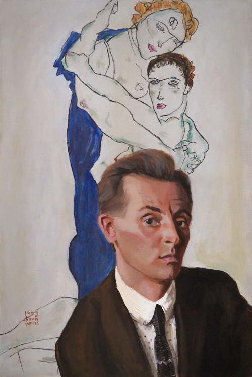 연인들 앞에 선 에곤 쉴레_72.7x49.2cm_Acrylic on canvas_2022