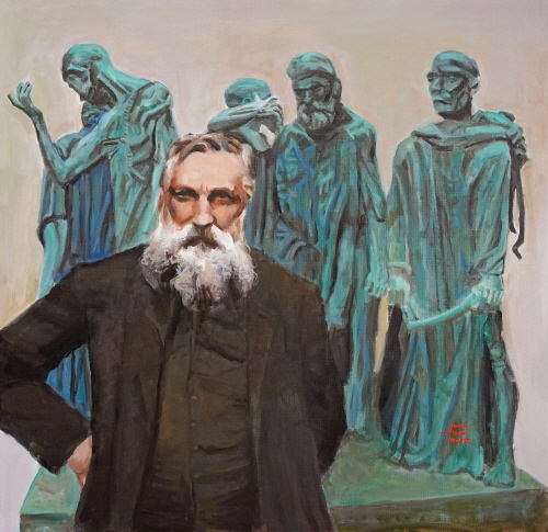 ‘칼레의 시민’ 앞에선 로댕_72.7x72.7cm_Acrylic on canvas_2023