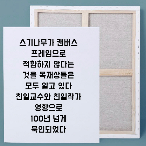 해외 유학한 작가와 해외 아트페어에 참가한 작가들로부터 스기나무 캔버스는 사용할수 없는 캔버스 프레임이라는 것을 뒤늦게 깨달아도 국내 분위기에 한마디 말도 할수 없었다.