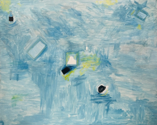 Water possesses the characteristic of flowing, making it hard to find stationary water in nature. Water flows in straight lines, but when it encounters obstacles, it bends and creates new paths when needed. It flows rapidly in some places and slowly in others. The ceaseless flow of water seems to support all living beings in the world. I expressed the path of flowing water through brushstrokes in oil painting, capturing various forms of flowing water as still objects by placing recognized objects along the path and holding onto the phenomena that occur by chance.