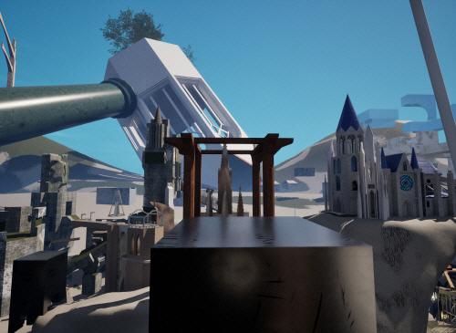 어떤 대상이나 현상에 대해 명확하게 정답이라고 할 수 있는 것이 과연 있을까 하는 의문을 가진다. 명확하지 않다면 그 무한대는 어디까지인지 어디까지가 경계인지는 개인의 경험, 감정, 지식, 가치관 등에 의해 다르게 인식된다고 생각한다. 경계에 대한 유동적이고 불분명한 인식을 탐구하기 위해 인간이 만들고 설계하는 건축물에 주목하였다. 건축물에는 시대적 배경, 가치관, 종교, 지식 등 경계의 인식을 흐릿하게 만드는 인간의 복잡한 감정과 사고가 담겨 있다. 그러나 동시에 건축물은 견고하고 흔들림 없이 서 있는 유형적 존재이기도 하다. 여러 양식이 혼합되거나 분해되고 뒤틀린 형태의 건물들로 채워진 가상현실을 창조하였고, 이러한 건물들로 구축된 경계를 직접 만지고 돌아다니며 관찰함으로써 경계 인식 문제에 더욱 가까이 접근하고자 하였다.