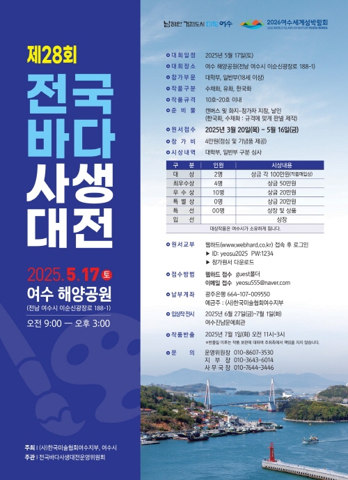 * 전시메일에 등록된 모든 이미지와 글은 작가와 필자에게 저작권이 있습니다. * vol.20250401-제28회 전국바다사생대전 |