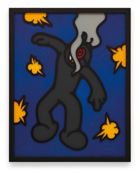 이번 전시 'LAZY'에서 샘바이펜은 현대 사회의 ‘게으름’에 관해 주목한다. 쏟아지는 정보 홍수와 급변하는 사회 속에서 빨리감기와 숏폼의 속도에 익숙해진 현대인은 수시로 방향 감각을 잃고, 때맞춰 수행해야 할 수많은 일들에 귀찮음을 느끼는 듯하다. 샘바이펜의 ‘시한폭탄맨’ 아이콘은 이처럼 해야만 하는 일들을 나중으로 미룰 때 생겨나는 마음의 동요, 두려움, 무기력함 등을 상징한다. 폭발하거나 김을 내뿜고, 소진되어 버린 상태의 시한폭탄맨은 에드워드 호퍼나 에두아르 마네의 고전 명화 속에 심슨 가족, 포켓몬스터, 꼬마유령 캐스퍼 등의 만화 캐릭터들과 함께 천연덕스럽게 자리 잡은 채, 관객에게 말을 건넨다.