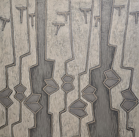 구도(求道) 작품구도는 ‘500 나한전’을 보면서 모티브를 얻게 되었다. 나한 석불에서 희로애락의 감정을 느끼게 되었고, 그 표정 속에 무념무상(無念無想)이 깃들어 있음을 깨달아 이를 표현하고자 했다. 구도는 회색 단색화풍으로 구성하여, 치유·명상·깨달음·경건함의 의미를 담아내고자 했다. 서예에서 한 획을 긋는 것처럼 담백한 표현을 통해, 동양적 미학의 여백과 사상을 고취하고자 했으며, 얼굴과 얼굴이 서로 연결되고, 선과 선의 방향을 따라 기쁨과 슬픔의 감정 표현이 연이어 이어지도록 구성했다. 웃음은 또 다른 웃음으로, 슬픔은 또 다른 슬픔으로 이어지며, 하나의 웃음이 만인의 웃음바다가 되기를 기대한다. 구도는 제 마음속 상념을 지우고 평온을 찾아가는 여정이며 향도이다. 이 작업이 앞으로 더 깊은 심미(審美)의 강으로 이어지기를 바란다.