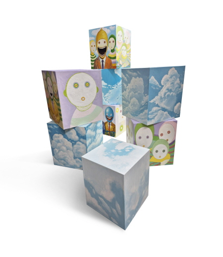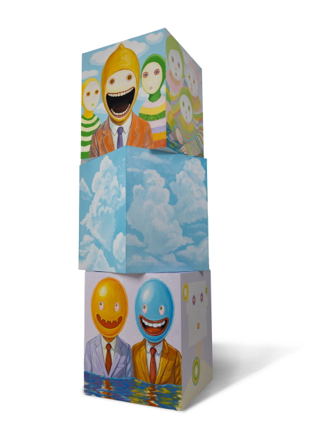 과거의 작품<인간 기둥>(1999~2006) 시리즈가 사실적 묘사와 어두운 색조 속에서 세기말적 불안을 드러냈다면, 이번 상자들은 훨씬 밝고 환한 세계를 품고 있습니다. 그러나 뼛속 깊은 주제 의식은 여전합니다.
