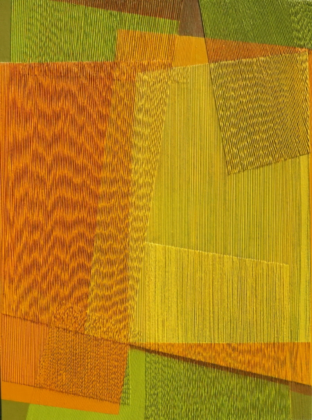 빛은 언제나 우리 곁에 머물지만, 우리는 종종 그것의 존재를 잊곤 한다. 김영옥(소화영옥) 작가는 실이라는 매체를 통해, 눈에 보이지 않는 빛이 존재를 드러내는 과정을 화면 위에 기록한다.