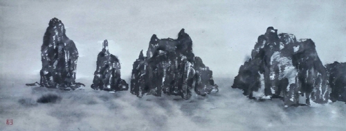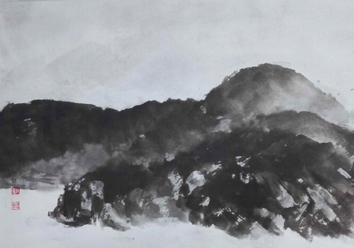 (중략) 작가가 표현한 산수 자연의 정아(靜雅)함은 감상자들의 시선을 심연화(深淵化)할 수있는 에너지를 지닌다. 이 심연(abgrund)은 곧 필과 묵의 운용 사이에서 표출된 긴장감과 변화로 인한 ‘현상적 차이’고 ‘현존재의 모습’이다. 먹을 통하여 고요하면서도 심연이 담긴 먹 맛의 깊이를 조형화해 나가는 작업은 상당히 흥미로울 수밖에 없다. 이런 연유로 화면상의 경영위치는 반듯하여 균제와 비균제성이 조화를 이루며, 더 나아가 먹과 물을 통해 단순화된 모노 계열의 형태와 운무 등이 현현하면서 그 깊이감을 더한다.