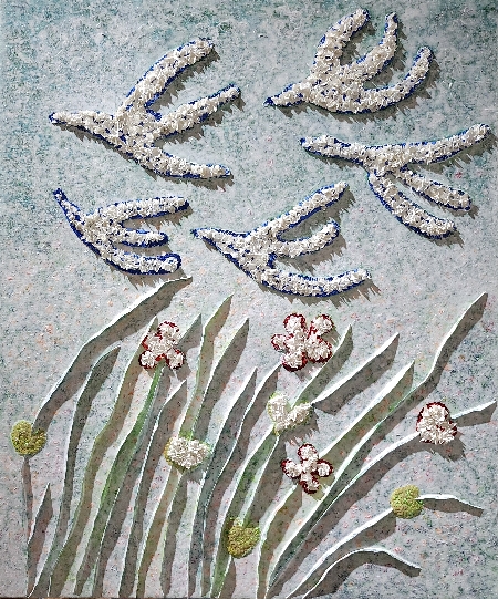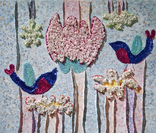 내면의 경험을 바탕으로 과거와 현재와 미래와의 과정을 표현하고자 한 작품이다. 작품의 주제에 맞는 시간성에 초점을 맞춰 화면을 하나의 놀이 공간으로 설정함으로써 작가와 감상자 사이에 공감대가 형성될 수 있는 미적인 체험이 이루어 질수 있게 하였다. 작품의 주재료는 한지를 사용하였고 한지의 전통성과 현대재료인 스팽클과 아크릴물감을 사용하여 시간의 생성과 소멸을 표현하였다.이번 시리즈는 시간유희 중에 선물과 꽃길을 주제로 인생에서 곁에 있어도 잘 느끼지 못한 자연의 공기나 식물,바람,꽃,가족 이러한 가장 소중한 것들을 선과 면을 살려 길이라는 통로를 통해 내면의 꽃길을 찾아 가는 여정을 표현했다. 인생을 살아가면서 누구나 꽃길을 걷기를 소망하지만 저마다의 꽃길은 길이도 크기도 모두가 다르고 그러나 그 길의 끝에는 활짝 핀 꽃들이 만발하기를 바라는 마음으로 작업하였다.이것은 마치 어린아이와 같은 순수한 마음에서 연유된 것으로 작가 본인 김희연이 시공간을초월한 감정의 몰입을 작품속에 쏟아 부음으로써 자기성찰과 구도자적인 희열과 유희를 선사 받았다고 할 수 있다. 이것은 원초적인 것과는 별개로 끊임없는 자기계발과 자기실현의 완성이라 할 수 있다.
