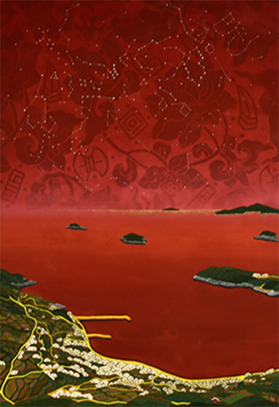 풍류- 생명의 꽃 Taste for the arts; the flower of life 장치길의 오랜 작가 활동에서 초창기의 주된 작업은 비구상이었다. 그러나 무엇을 그릴 것인가에 대한 자기 고민은 스스로의 회귀, 고향으로의 회귀로 이어졌다. 30년전 고향, 통영으로 돌아간 작가는 고향의 풍경과 자연, 민속과 무속에 드러나는 한국의 정체성을 탐구하면서 자신의 실체를 찾으려했다. 이러한 작가의 귀향, 자연과 근원의 탐구는 한국의 문화 속에 깃든 음양의 의미, 우주 순환의 원리를 찾는 오행 등 그 상징과 의미의 맥락에서 이루어져 왔다. 이는 초자연에 대한 섭리에 대한 작업이라고도 할 수 있다. 작가 자신과 고향, 한국이라는 지역적 테두리에서의 작업은 결국 우주의 원리, 자연의 질서, 생명의 윤회에 탐구로 이어지며 오히려 세계, 인류의 보편성으로 나아갔다. 지역적이고 한국적인 상징은 어느덧 인류의 보편적인 상징으로 의미가 확대 되었다. 그의 작품이 담고 있는 자연과 생명의 이야기는 다양한 국가와 인종, 문화에서 보편성을 갖는다.