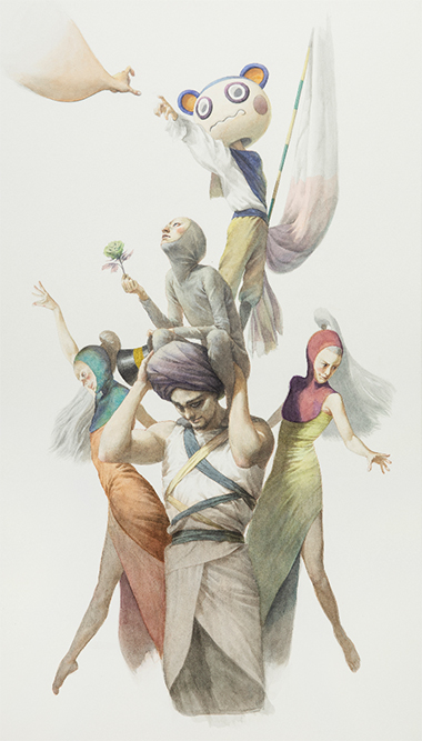 신념의 탑_201x136cm_Ink, watercolor and acrylic on paper_2020