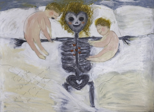 Skull mommy, 56 x 77 cm, Oil pastel, pencil on papers, 2019