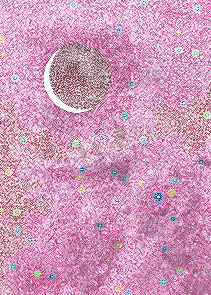 꽃달과 별_91x73_한지에 수묵점묘채색_2020.07