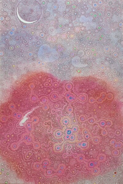 낮달의 사랑_52.2x91_한지에점묘채색_2020.06