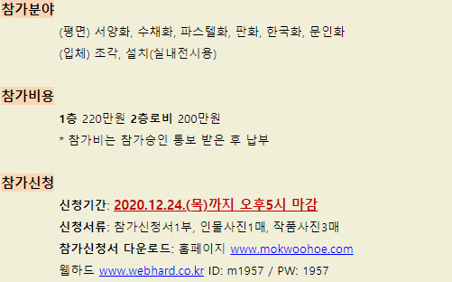 2021목우미술축전 운영위원회 Tel) 02-508-6510 홈페이지: www.mokwoohoe.com 이메일: mokwoo1957@naver.com