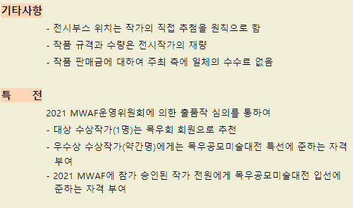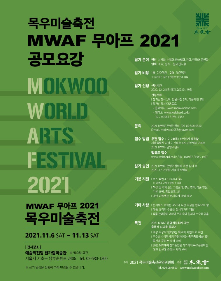 2021목우미술축전(MWAF) 2021. 11.6(토) - 11.13(토) 월요일 휴관 예술의전당 한가람미술관