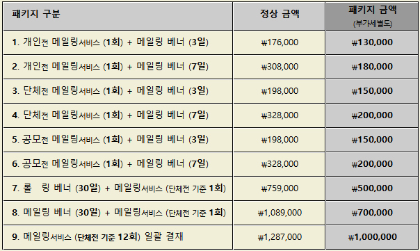 ■ 메일링서비스 · 베너 패키지 (선입금으로 계약이 성립됩니다.)