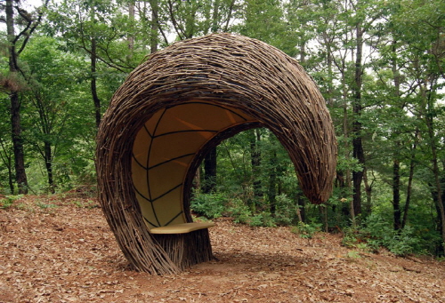 <숲 속의 은신처展> 2017 금강자연미술프레비엔날레의 ‘숲 속의 은신처’전은 6개국 12명의 자연미술가들이 연미산 숲 속에서 펼친 셸터제작 프로젝트다. 자연미술가들의 예술적 상상력으로 구현된 숲 속의 은신처는 오늘이라는 현실 속 거센 비바람을 막아주는 예술적 안식처가 되어줄 것이다.