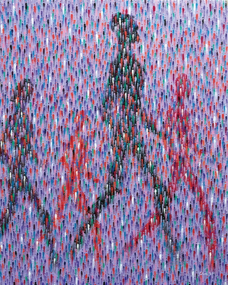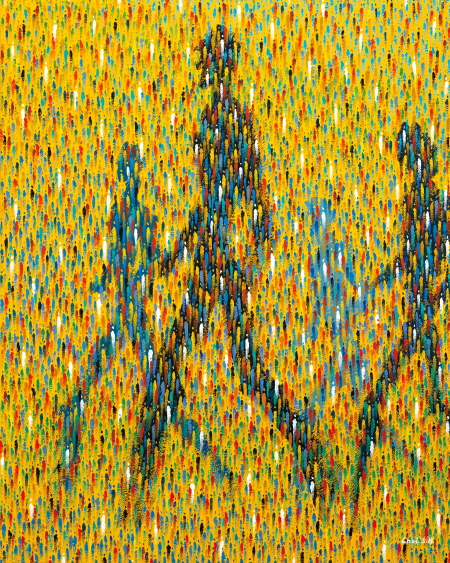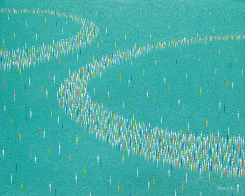 The work begins with a simple and light touch. The most primitive touch, simple and simplified human touch like an icon, not a complex shape, is stacked in layers to create the overall shape. Another presence can be felt when shaping a new form through repetitive tasks. Small individuals form a crowd in a complex society and have infinite expansion and energy. This is because the existence of individuals gathers to balance the whole. And everyone wants to show their presence intensely in the crowd. These diverse individual psychology is expressed through colorful colors. Various emotions in the crowd, and clearness as an individual away from complex relationships, were intended to be expressed through the harmony of primary and complementary colors in the work. This may be their instinct to reverse there own unclear appearance. Viewers who see the work find themselves in the crowd. Although the works are somewhat experimental and reckless, if they become stepping stones for the next exhibition, they are sufficient in themselves. Even though the current movement is small and weak, I hope it will be energy for a new start, and I always want to move forward in a new direction.