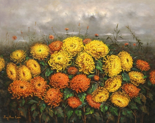 멋깔스러움보다 사실적으로 보는이에게 왜곡 없이 있는 그대로 감동을 받을 수 있도록 했다. 화사하면서도 차분한 기운을 가져다 주는 국화, 무르익어가는 어느 9월 해바라기만이 가지고있는 포근한 노란 색감은 작품 속에서 마주하는 사람들에게 휴식을 제공한다.