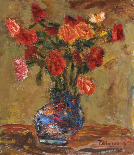 많은 사람들이 그를 장미의 작가라고 부른다. 그의 작품이 꽃병에 담긴 장미만을 수십년 동안 중점적으로 보여왔기 때문이다. 그의 장미들은 대부분 다채롭고 자유분방한 자태, 매혹적인 색채와 수려한 필선의 감각으로 캔버스에 넘치는 장미만의 매력을 가지고 있다. 한 인터뷰에서 그는 아주 오랫동안 장미만 고집해 온 이유에 대해 "장미는 형태와 색깔이 참 자유로운 꽃이며 화면에서 조형적으로 창조하기에 더 없이 아름답기 때문"이라고 했다. 그리고 "장미작품은 머릿속의 이미지를 조형화한 것으로 회화의 조형도 하나의 함축된 언어라고"라고도 했다. 그러나 우리가 그가 장미만 그린 화가가 아니라 탁월한 조형성을 보여준 무수히 많은 추상작품이 많다는 것은 알지 못한다. 왜 그럴까? 그것은 그가 추상작품을 많이 제작해 왔지만 발표하지 않았기 때문이다. 이제 그는 장미의 형태와 전혀 다른 색과 형태로 순수한 조형 요소인 선과 면, 색채로 독창적 추상의 세계를 마무리하고 있다. 그 작품들은 대부분 침묵적이다. 내면의 숨겨진 감정들을 단순화 하거나 생략하여 수직, 수평선으로 환원시키는 과정에서 그의 조형의 콤포지션과 색면 추상의 역량을 발견하게 된다.